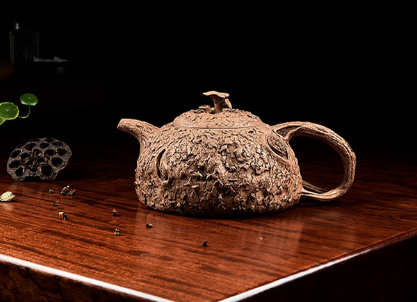 葛岳純父子皆擅長花貨的制作,其中家族代表作九龍至尊壺是由葛超美設計,其父親葛岳純制作完成,遠看壺型整體氣韻流暢,近看做工精美無暇,是父子合作的經典之作,現已注冊外觀專利和終身版權。后葛超美在其父親傳統技法的基礎上,吸收其藝術菁華,創造革新,制作出更為精致、富有立體感的九龍至尊壺,九龍盤壺戲珠,浮雕云騰致雨,精致于細發,大氣于天地,寓意天降祥瑞,國泰民安。
